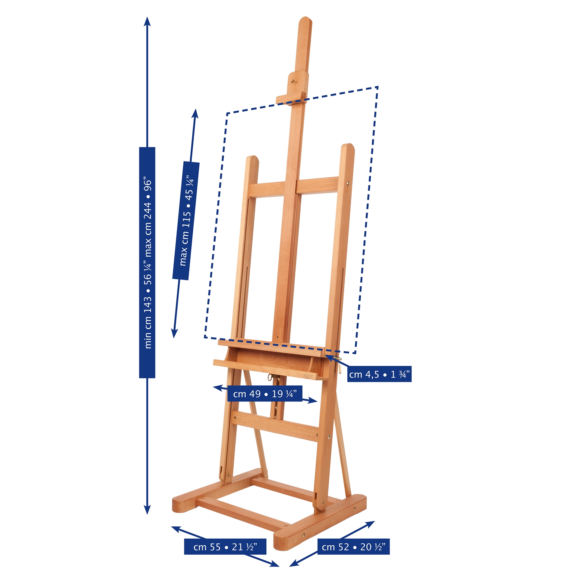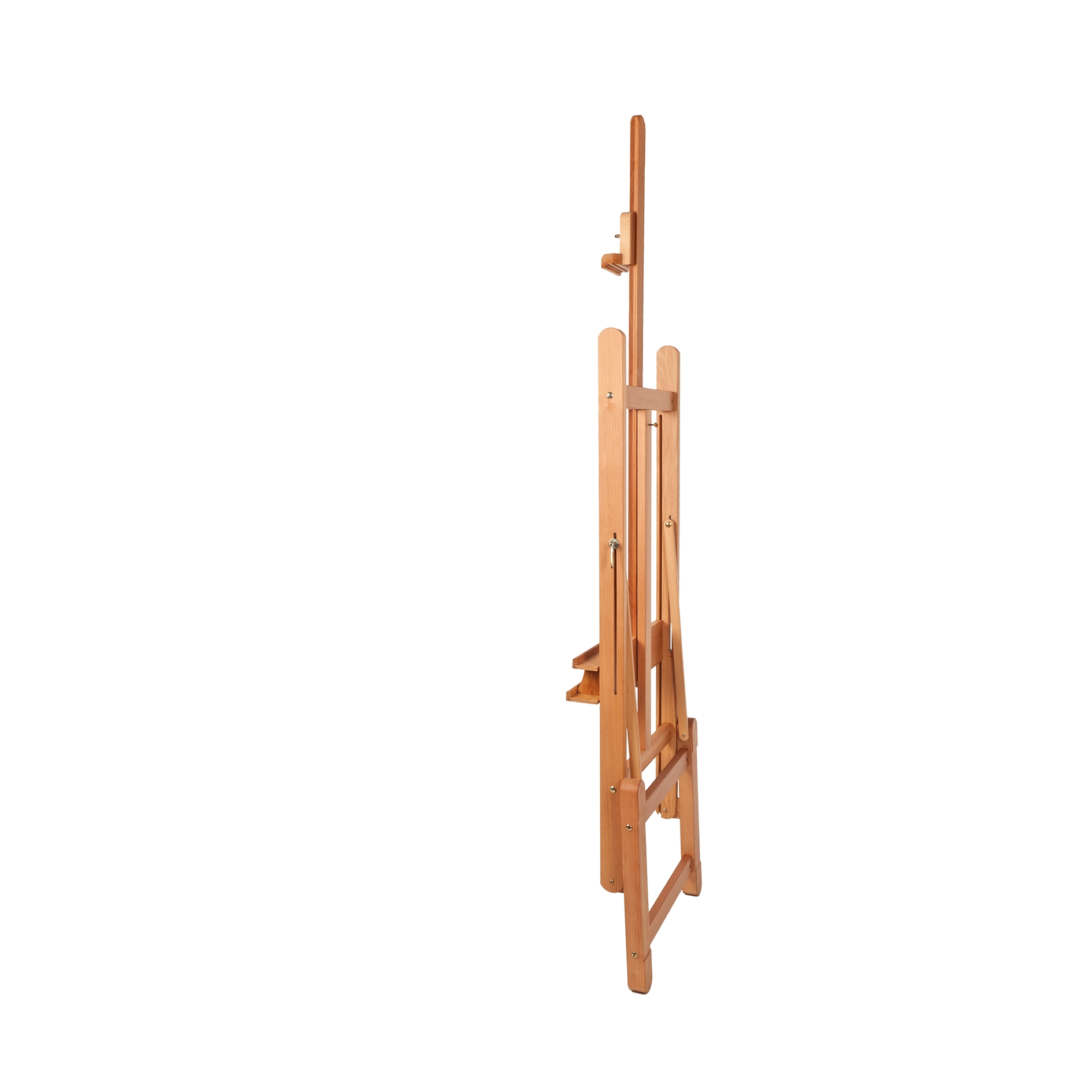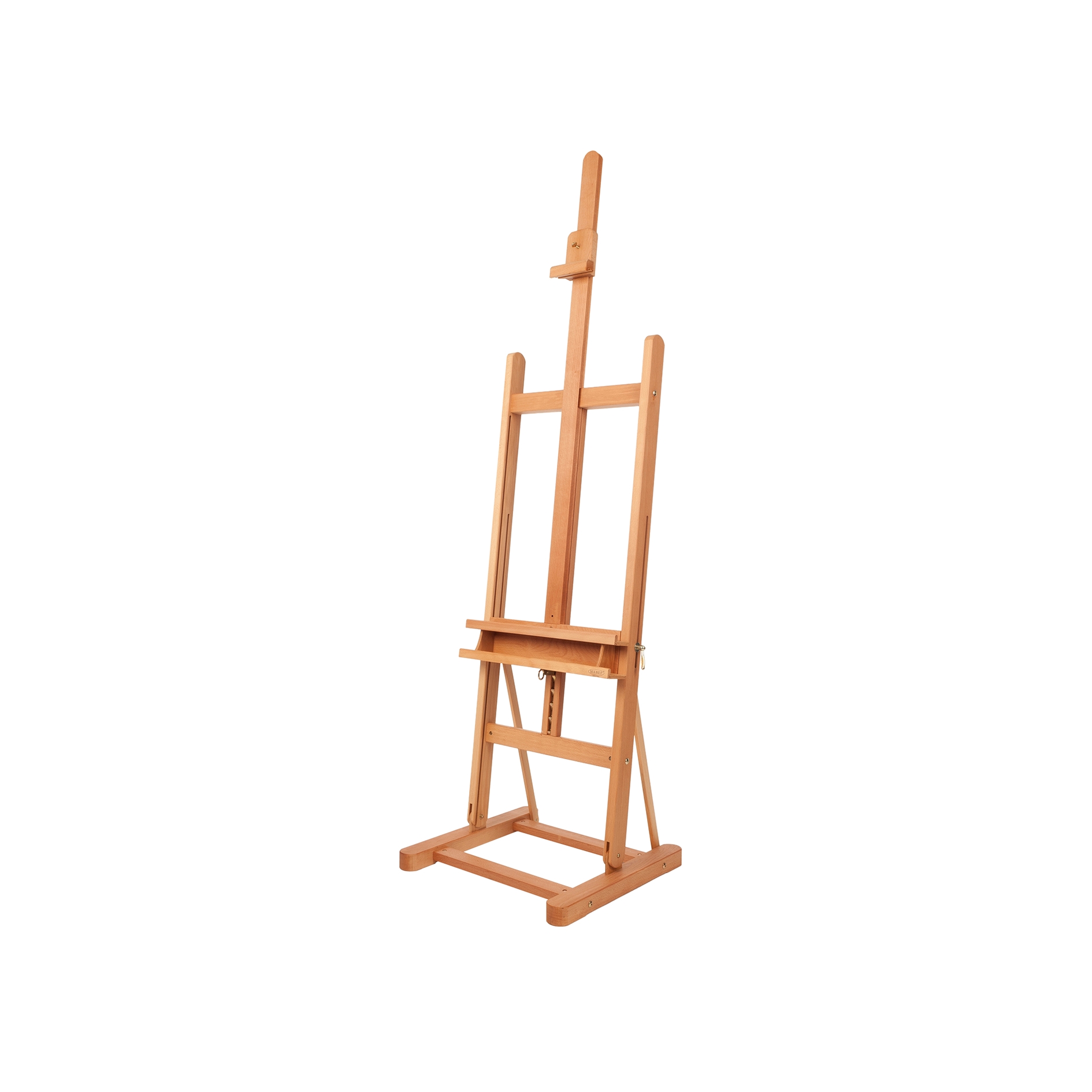 Made of oiled beech wood, the MABEF M-09 easel is our best-selling Studio Easel due to itâÂÂs versatility and size. This easel is fitted with a brush/equipment tray below the bottom canvas ledge and the canvas holder height is adjusted with a sliding ratchet. Once the desired position is set, it can be locked by tightening the rear locking screw. The easel has a maximum height of 244cm with a maximum canvas height of 115cm. It is extremely maneuverable in the studio with a weight of 16.5 kg and has a maximum load capacity of 15kg. This is a great first easel for any artist requiring a stable support for their canvases.